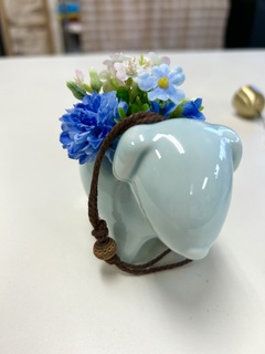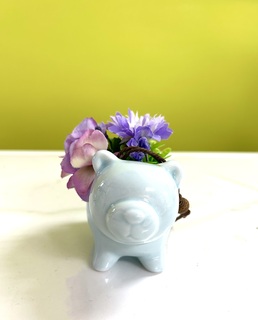 陶器は優しいブルー色のアニマルを形どった中にお花をアレンジした作品です♪✨